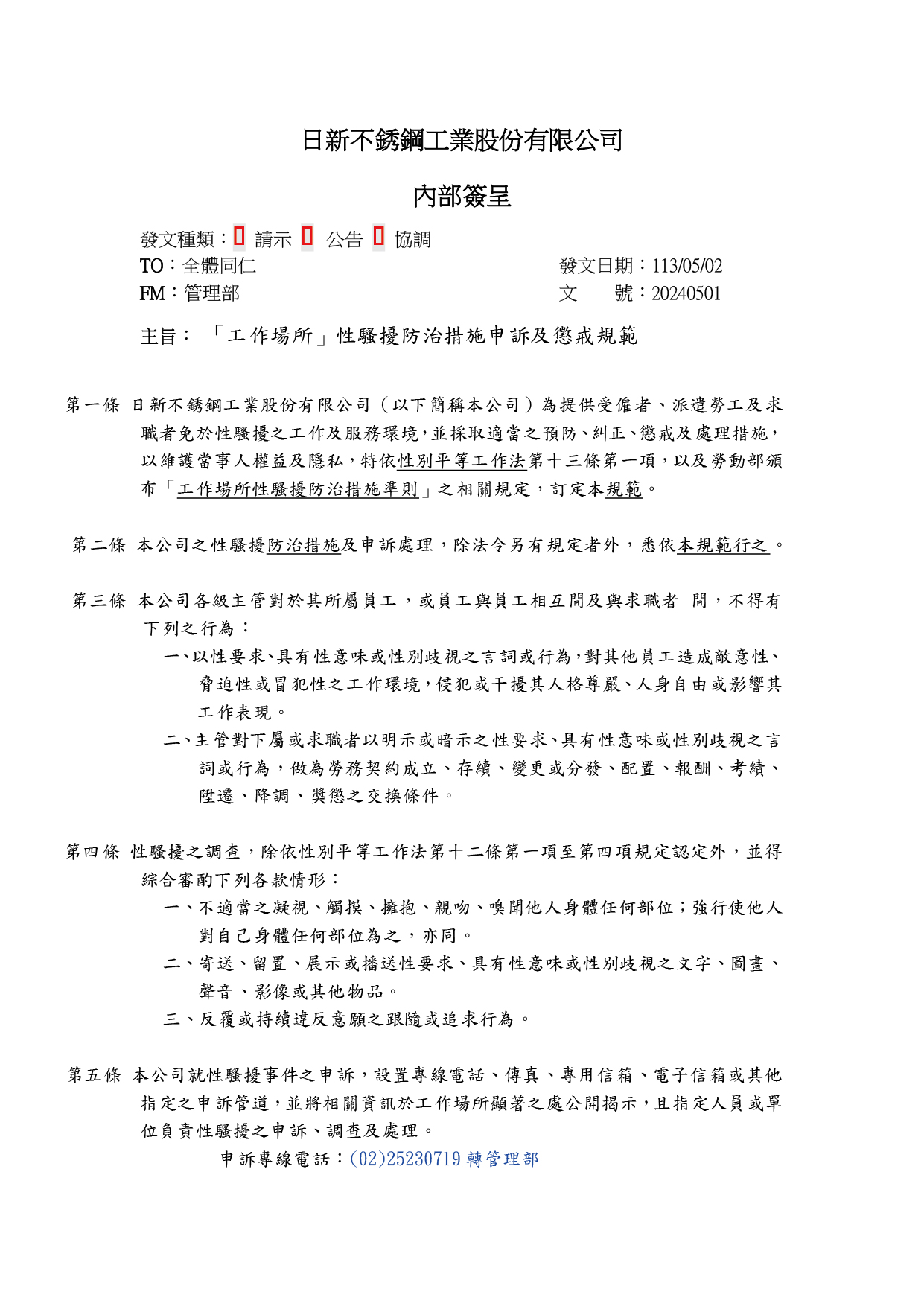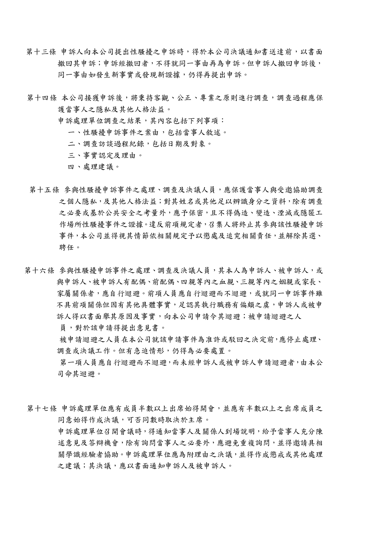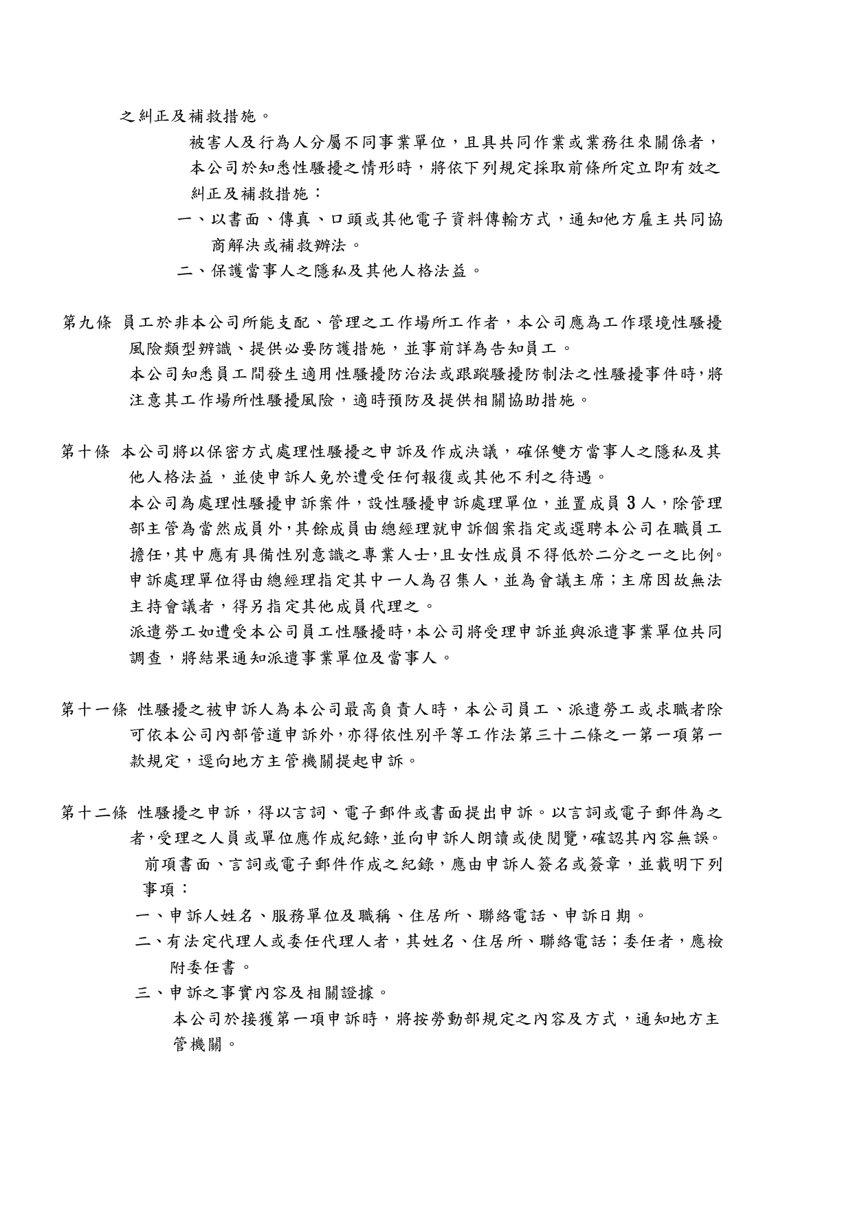 「工作場所」性騷擾防治措施申訴及懲戒規範