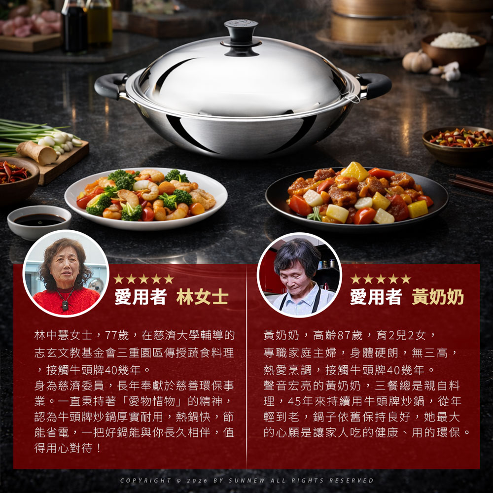 主廚鍋 - 雅登炒鍋40CM(雙耳附蒸層) - 牛頭牌炊具
