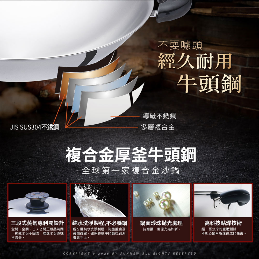 材質 鍋身:複合牛頭鋼
