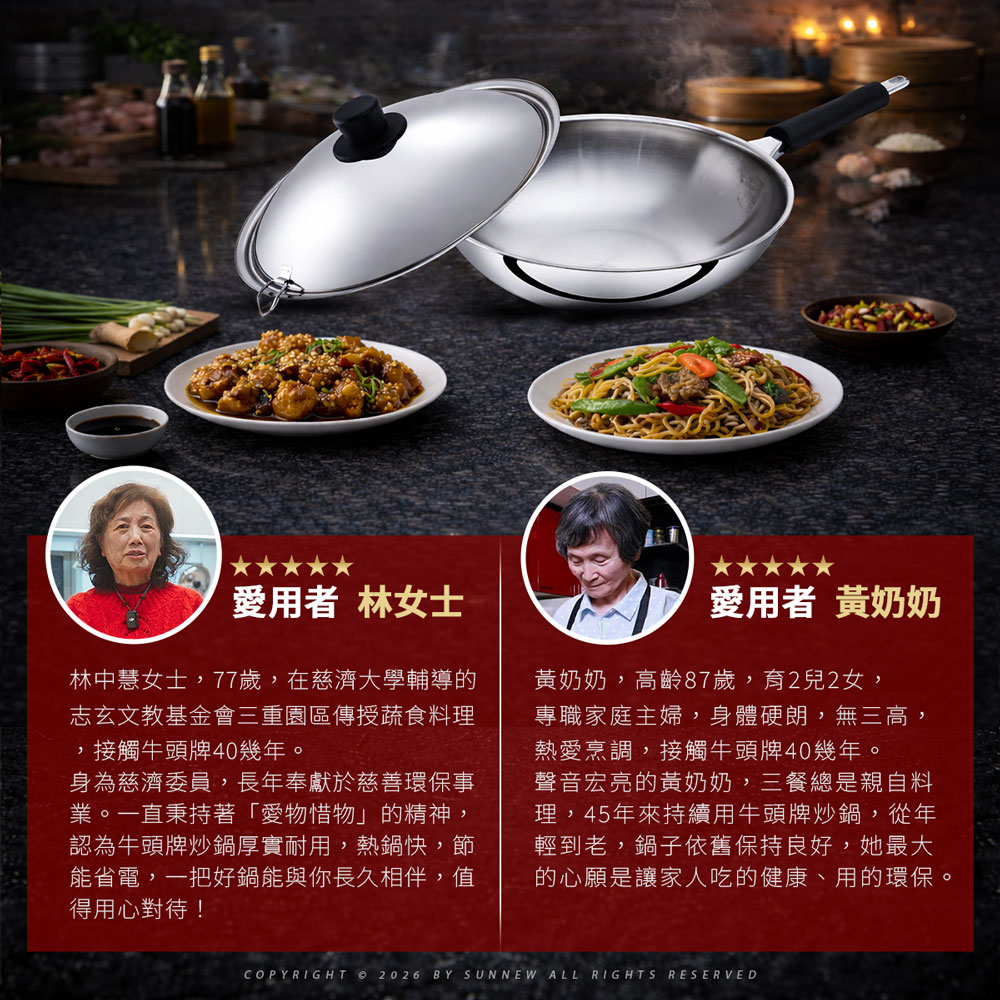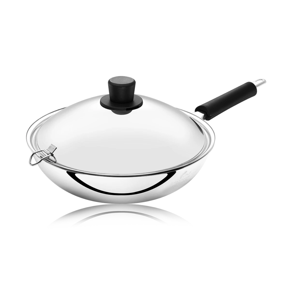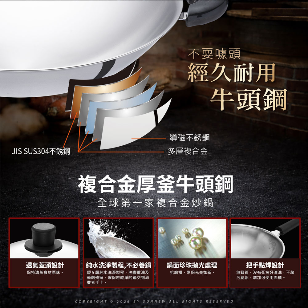 平底圓弧式鍋身設計,結合中式炒鍋與平底鍋優點,可用於電磁爐、IH爐,不挑爐具。
