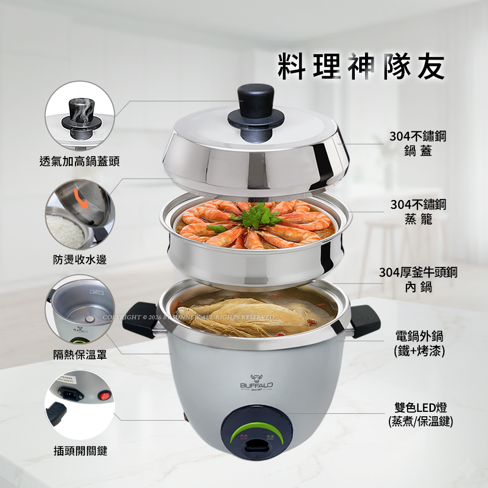 台灣電鍋新基準,分離式牛頭鋼內鍋氣電雙動能。